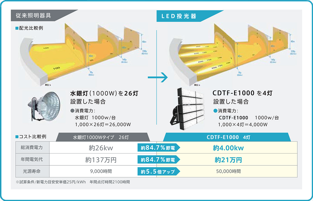 大型LED 投光器との組み合わせで