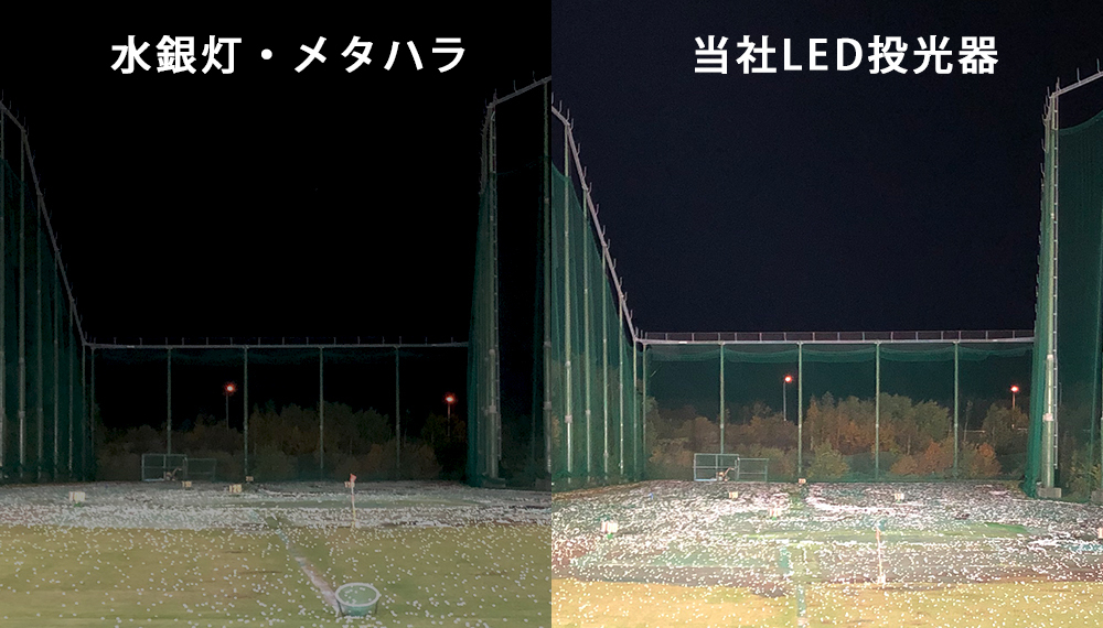 照度が大幅にアップすることで、打ったボールがどこまで飛んだのか把握しやすくなり、顧客満足度もアップ。