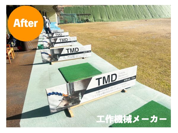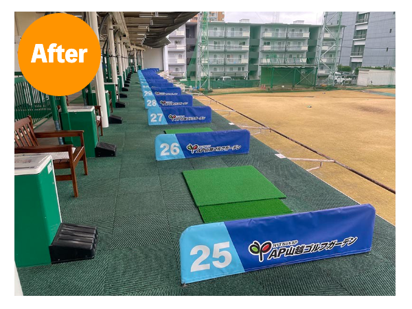 オリジナル仕切板 SHIKIRIBAN 個性が生かせる!また大型なので事故防止に繋がります。 オリジナル打席仕切り板を作りませんか? 高さ40cm 幅180cm と大型な為、事故等の抑制にもなります。 事例 山越ゴルフガーデン様 得意先:広告通信社様 愛媛県松山市 オリジナル打席仕切りカバーの制作です。 HPからの問い合わせからの納品となりました。 サンバレーゴルフクラブ様 熊本県 打席仕切り板にスポンサー広告を載せました! HOME お知らせ一覧 取扱商品一覧 広告募集! お手軽価格シュミレーター スイング分析特化型シュミレーター 左パーテーション LED照明・ナイター照明 -LED照明 施工事例① -LED照明 施工事例② -LED照明 施工事例③ POSレジシステム ティーアップ機 ボールホッパー 打席改修 トルネード型ボール洗浄機 左打席増設 オリジナル仕切版 送球システム タイルカーペット・床材 フェアウェイ人工芝 防球ネット各種 ボール集球機各種 打席チェア 鉄塔診断 スイングナビ 暖房機器 ハスクバーナロボット芝刈機 場内・ヤード版・備品 アプローチポッド オリジナルマット固定ゴム その他・備品各種 会社概要