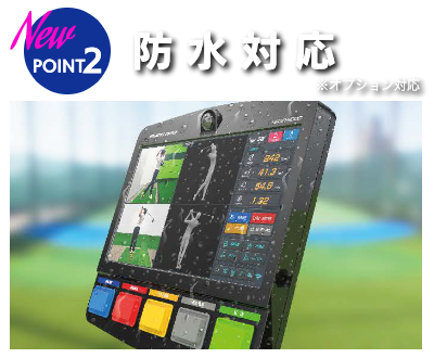 SWN-5000ではオプションで防水規格IPX3相当の防水しよに変更が可能となりました。 これにより、今まで使用できなかった「屋外」のゴルフ練習場などに設置ができるようになり、今まで以上に多くの方に使用していただける機器となります。