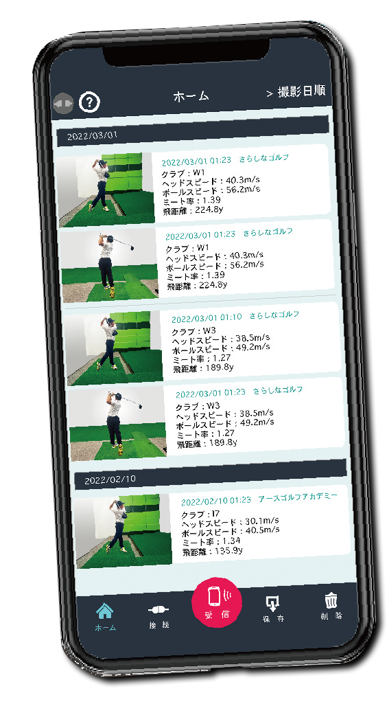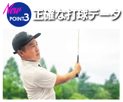 ドップラー効果によりボールを追尾する弾道測定器の機能も兼備。 飛距離、ヘッドスピード、ボールスピード、ミート率は、他社製品との比較、数万回のテストショットを経て、より正確な数値を表示させることに成功しました。